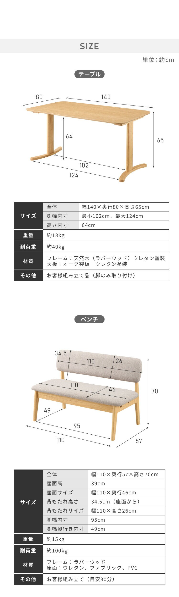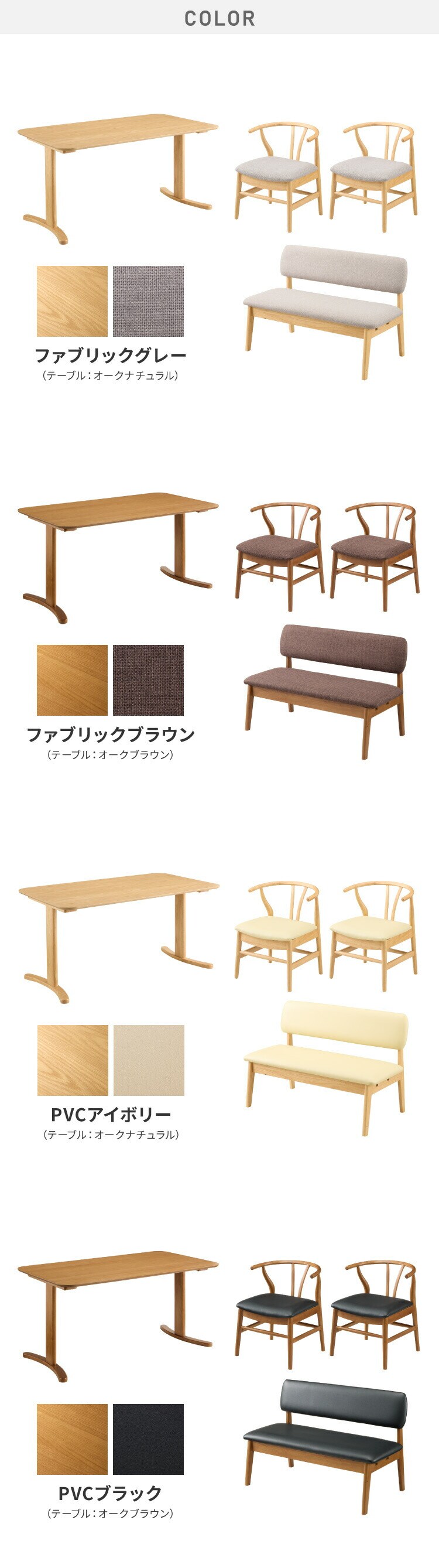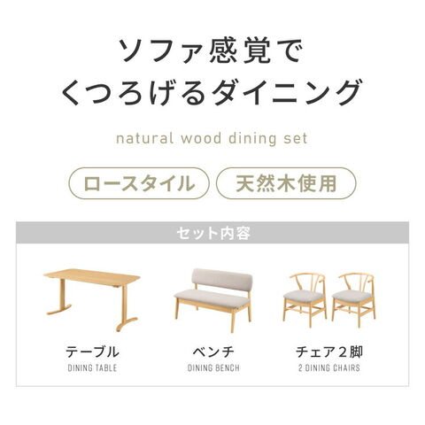 ・北欧デザインチェア:ローガンとT字脚ダイニングテーブル、ベンチの4点セットです。