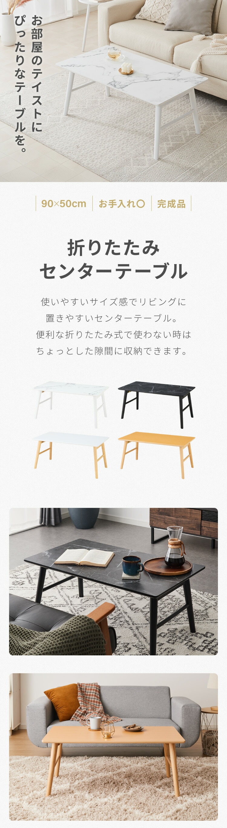 折りたたみ センターテーブル 90×50cm ローテーブル おしゃれ 北欧 シンプル ナチュラル センターテーブル ソファテーブル テーブル 大理石 石目調 机 折り畳み 収納付き 天然木 完成品 木製【送料無料】