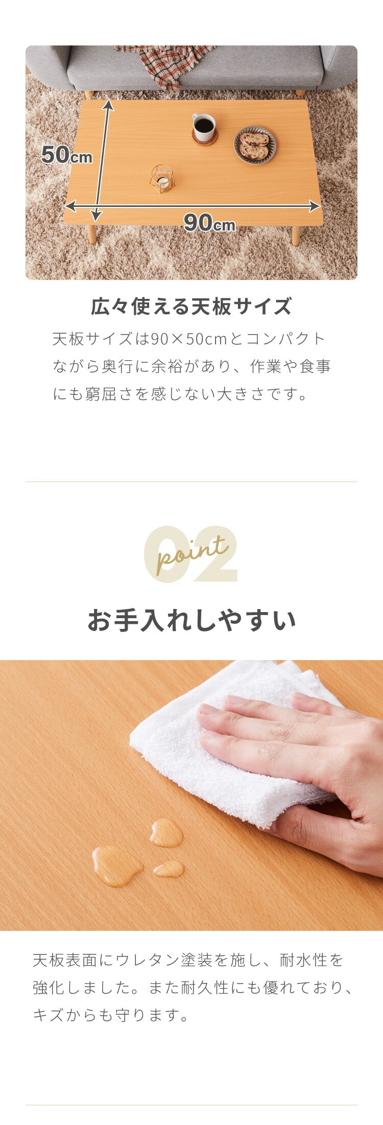 ・天板はメラミン仕様なので、汚れに強いです。