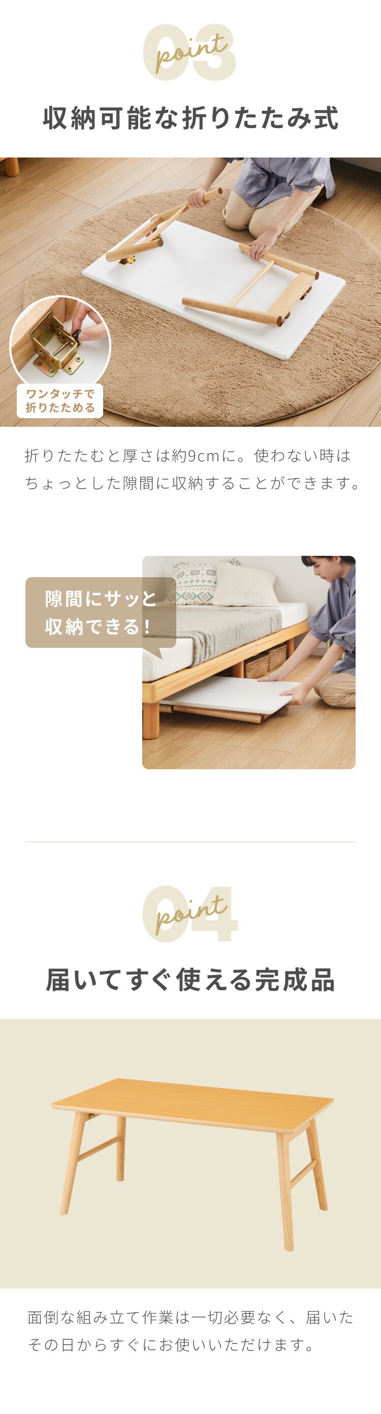 ・届いたらすぐ使える、折りたたみセンターテーブルです。