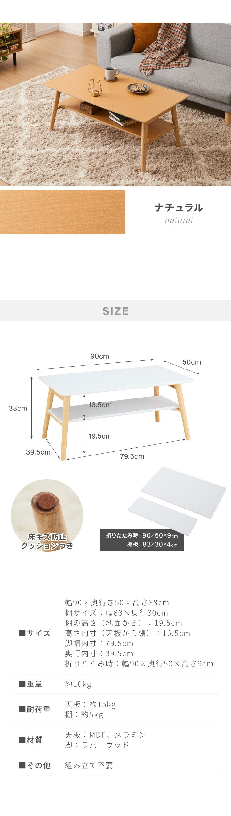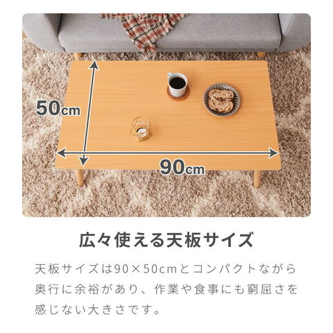 折りたたみ 棚付きセンターテーブル 90×50cm