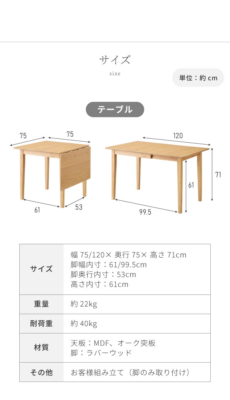 ・テーブルは用途に合わせて75cmと120cmに伸縮できます。