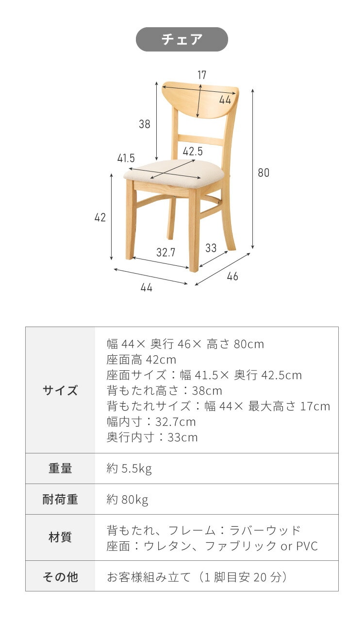 ・伸縮のテーブルとダイニングチェア「セナ」の3点セットです。