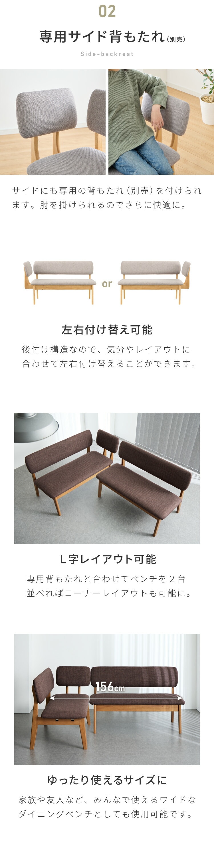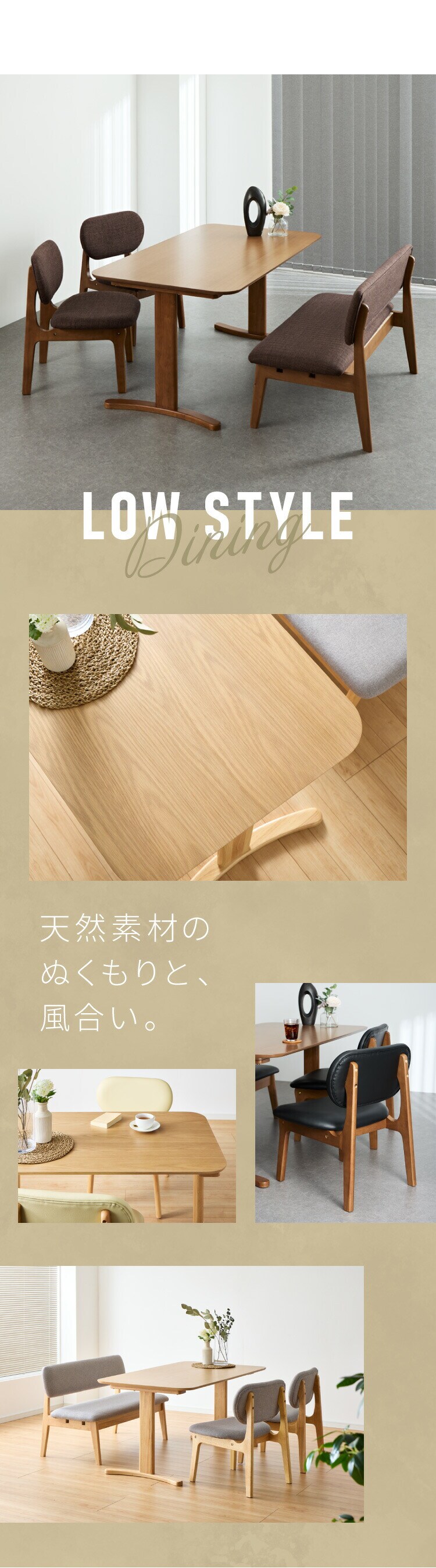 ・ダイニングチェアとベンチは座面を大きく作っているので、胡坐がかけます。