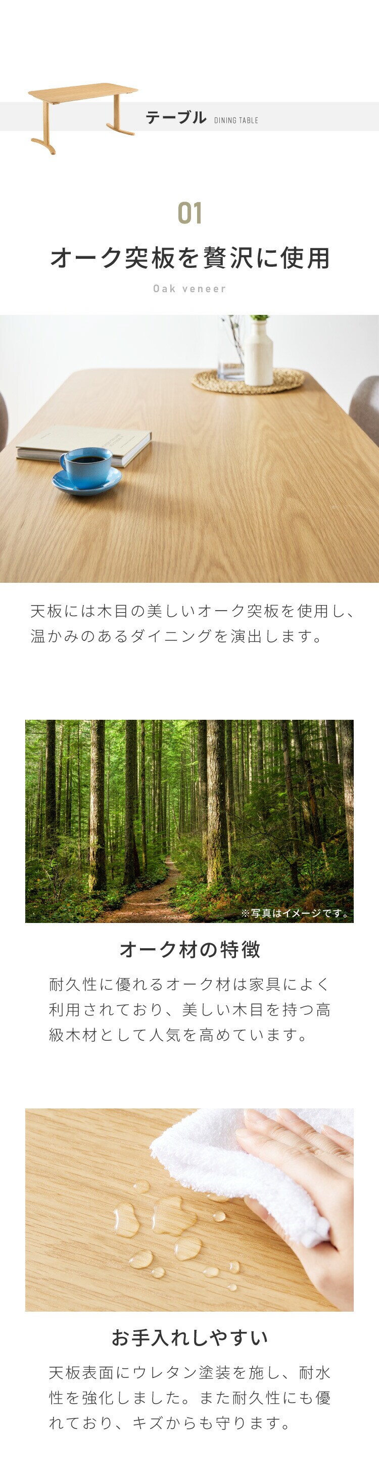 天板:オーク突板 ウレタン塗装
