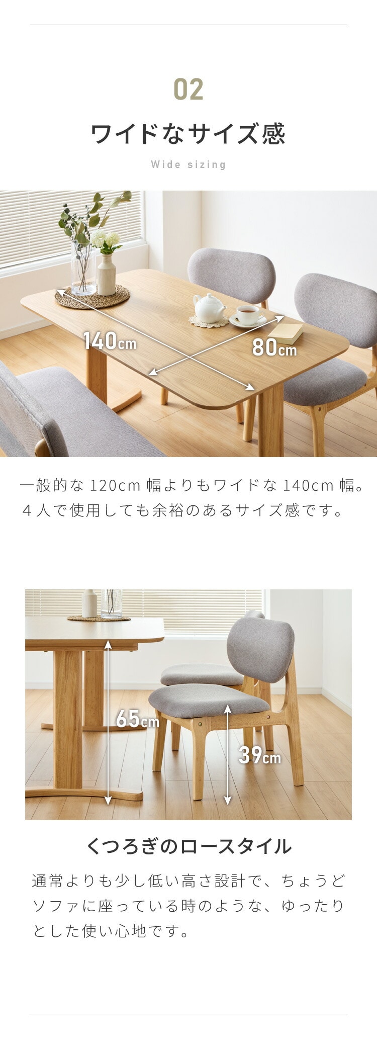 ・テーブルの高さは65cmと低めに設計しており、お部屋を広く見せます。