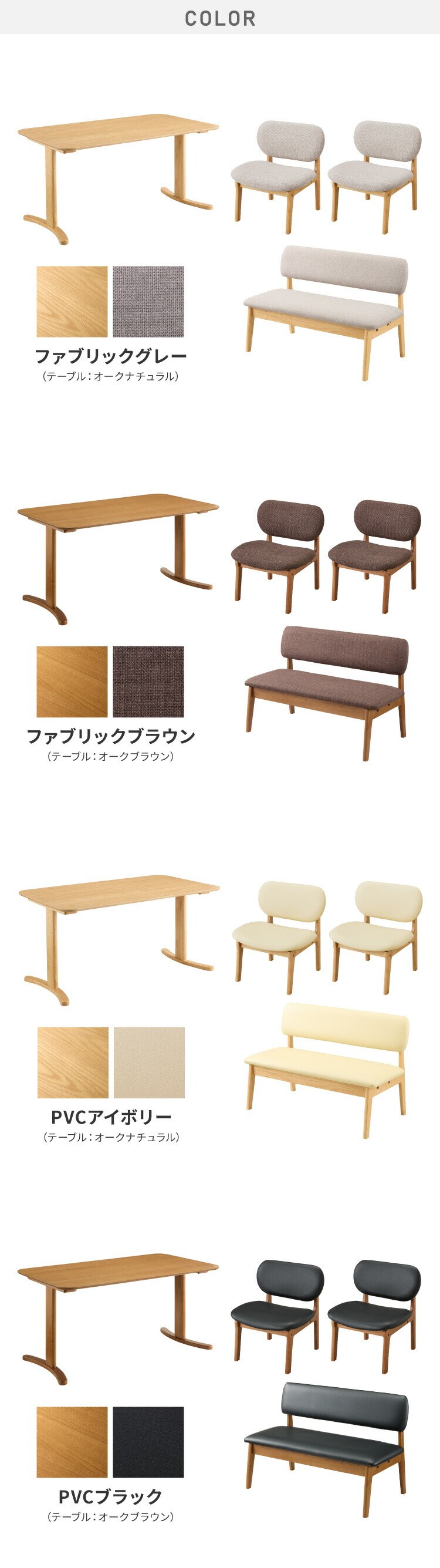 ・ゆったりダイニングチェアとベンチ、テーブルの4点セットです。