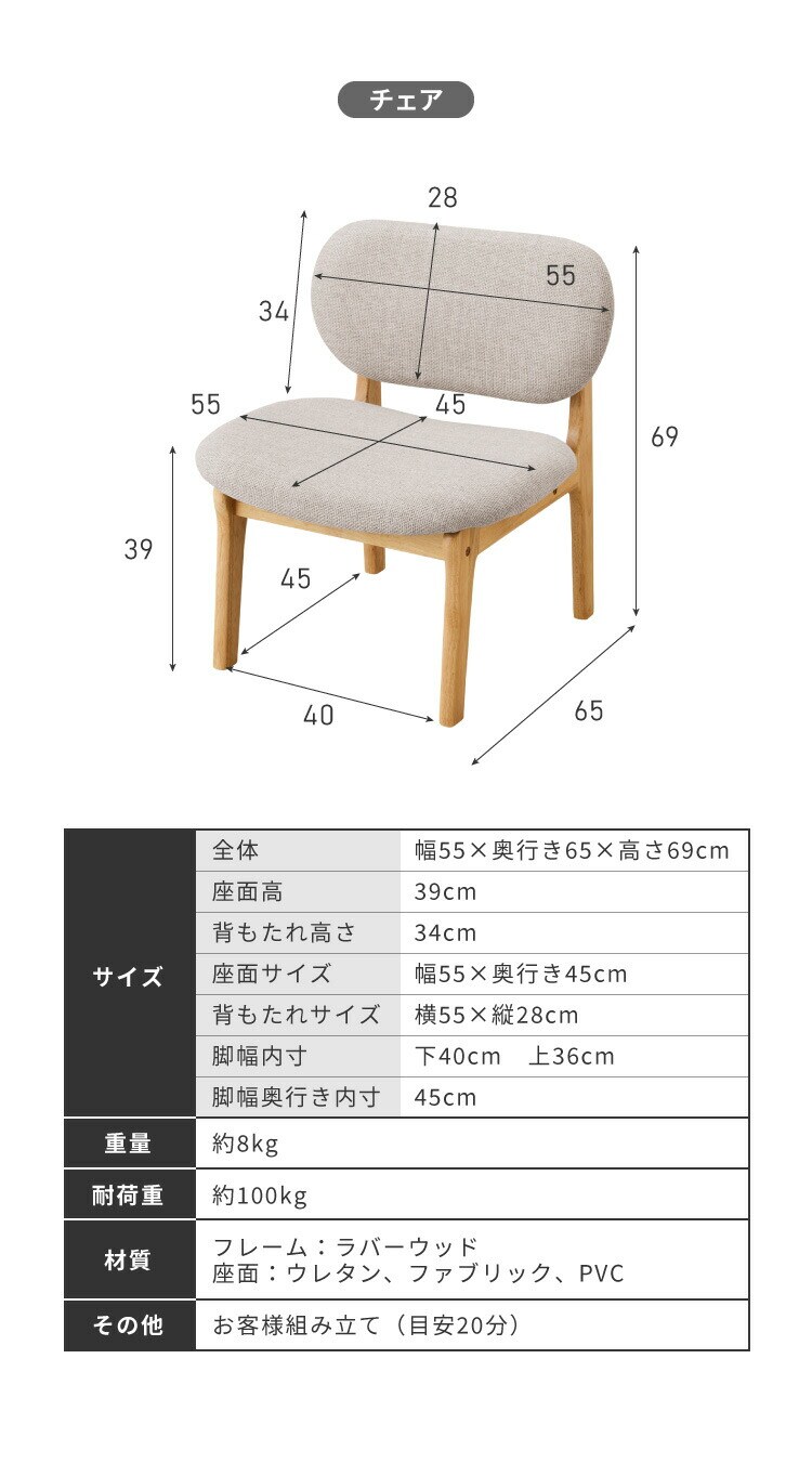 座面:ウレタン、ファブリック、PVC