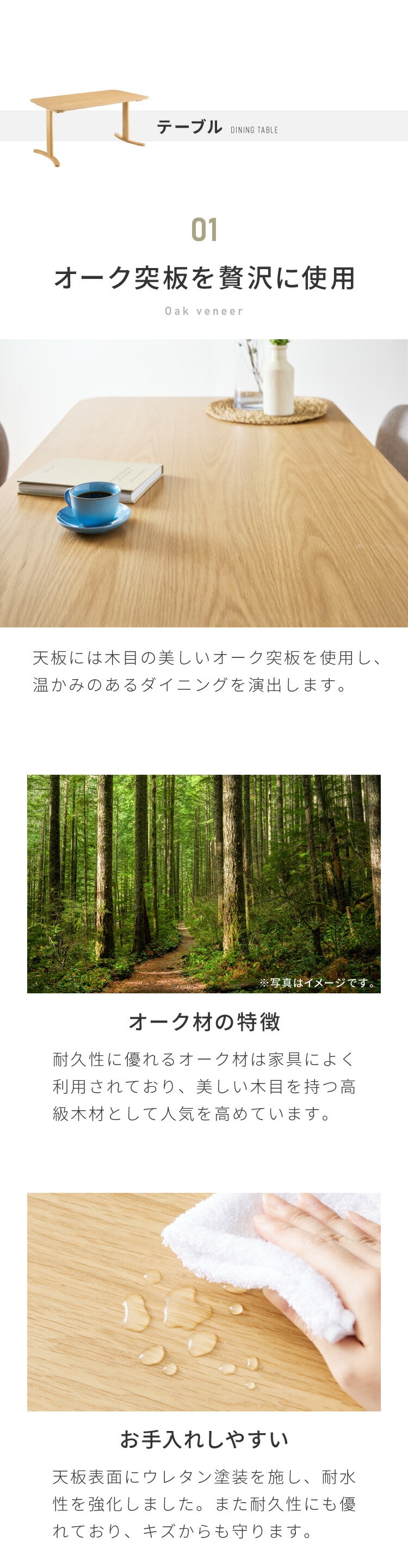 天板:オーク突板 ウレタン塗装