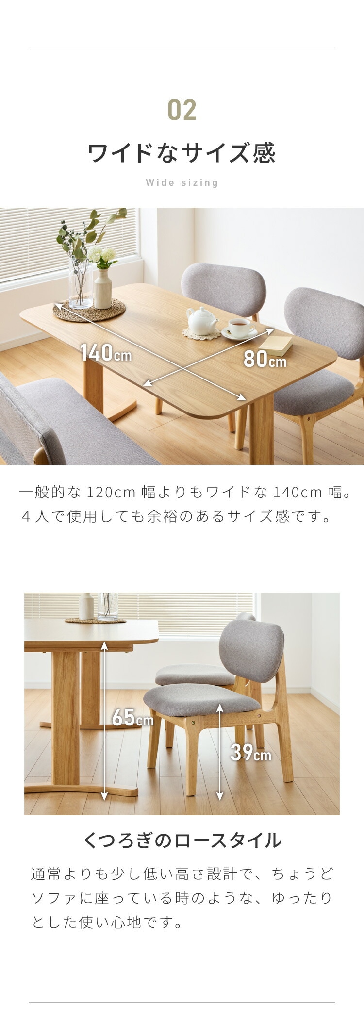 ・テーブルの高さは65cmと低めに設計しており、お部屋を広く見せます。