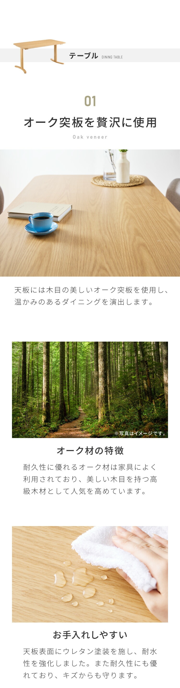 天板:オーク突板 ウレタン塗装
