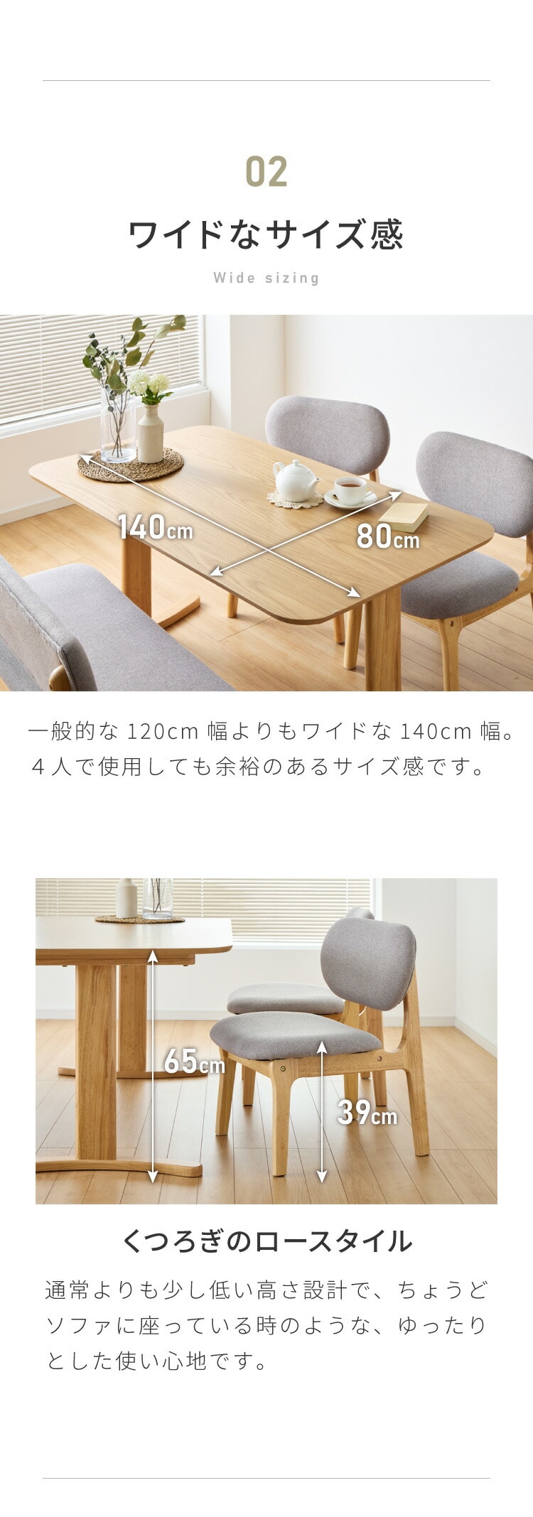 ・テーブルの高さは65cmと低めに設計しており、お部屋を広く見せます。