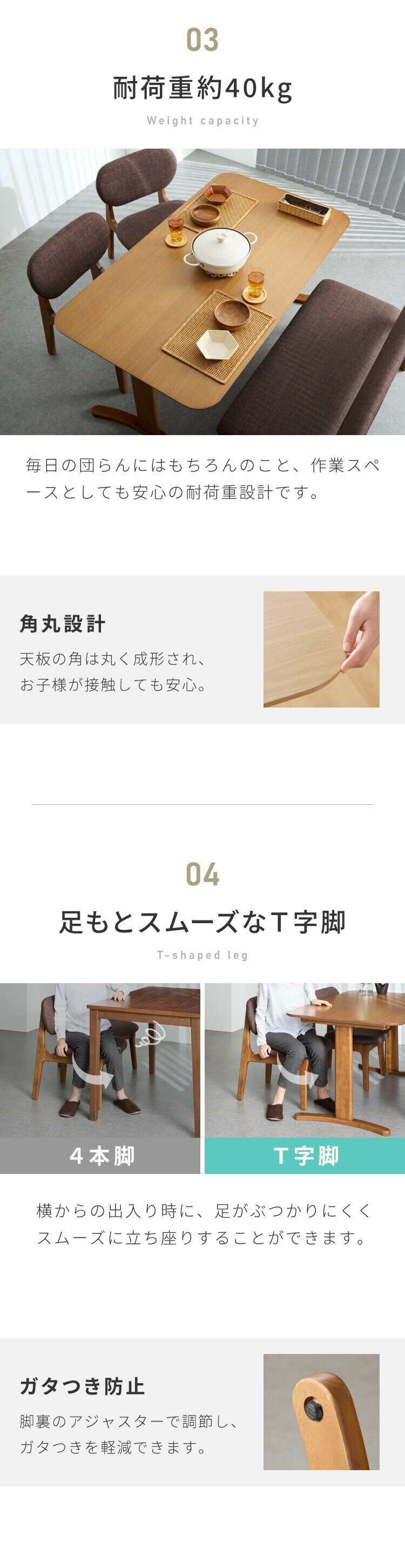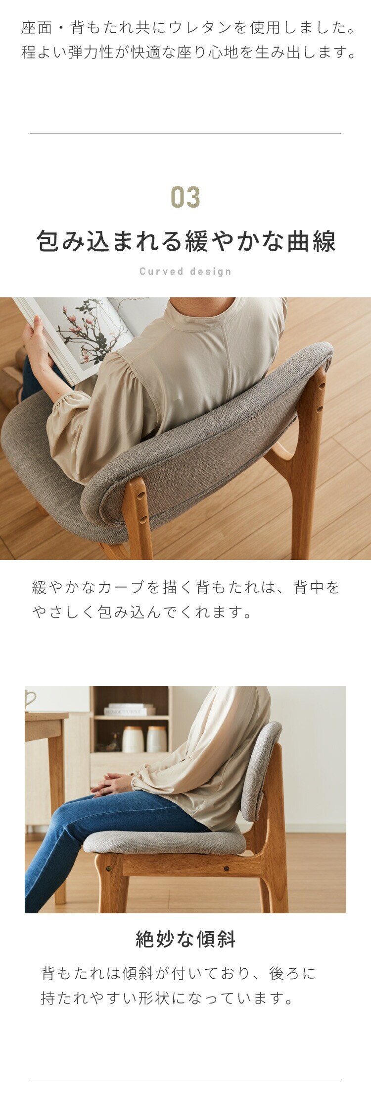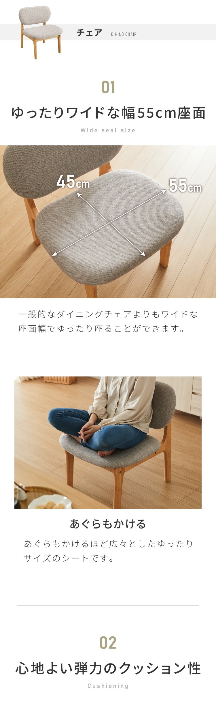 ・ダイニングチェアとベンチは座面を大きく作っているので、胡坐がかけます。