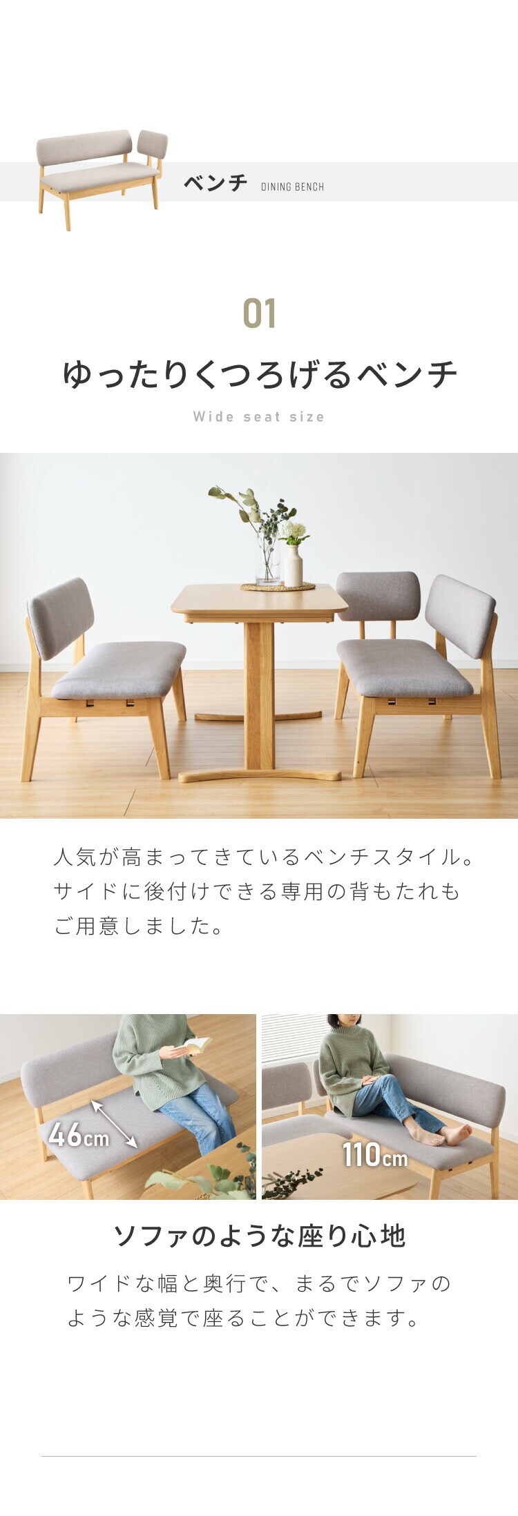 座面サイズ:幅110×奥行46cm