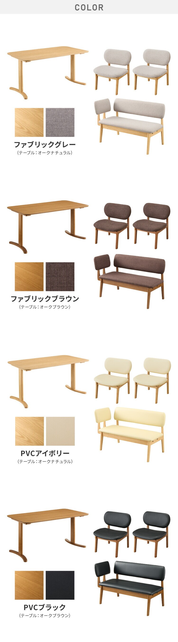 ・ゆったりダイニングチェアとベンチ、テーブルの4点セットです。