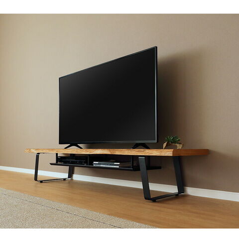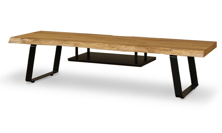 一枚板風TVBです。前面は天然のノタ面無垢材があしらわれているため、木が持つ本来の魅力が楽しめるテレビボードです。そのため一枚一枚形状が変わります。