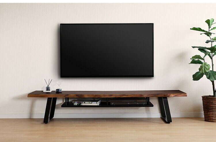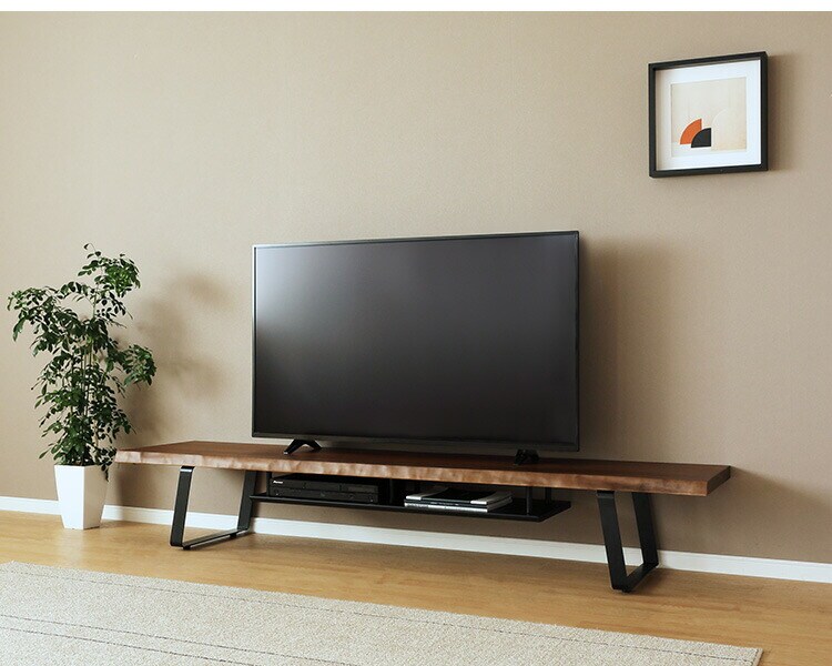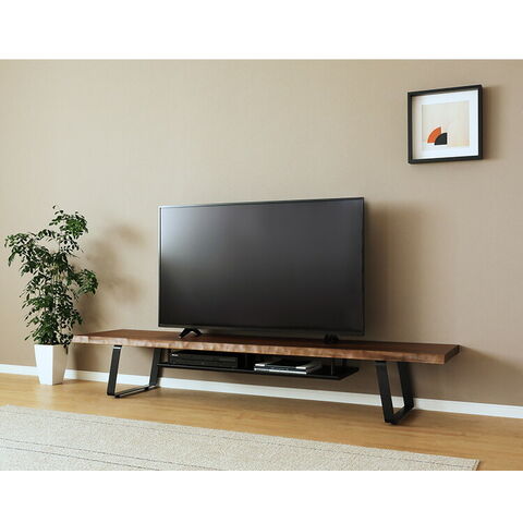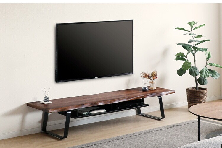 一枚板風TVBです。前面は天然のノタ面無垢材があしらわれているため、木が持つ本来の魅力が楽しめるテレビボードです。そのため一枚一枚形状が変わります。