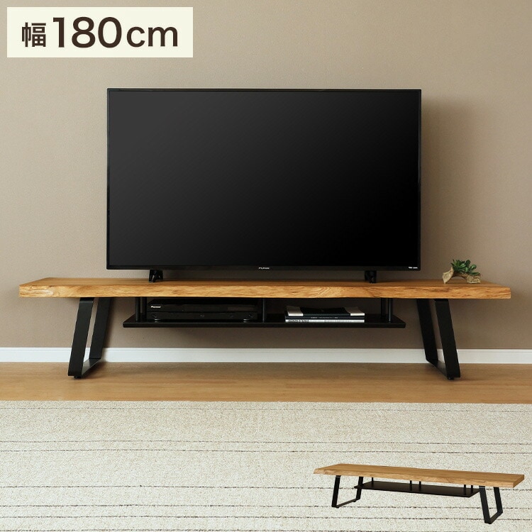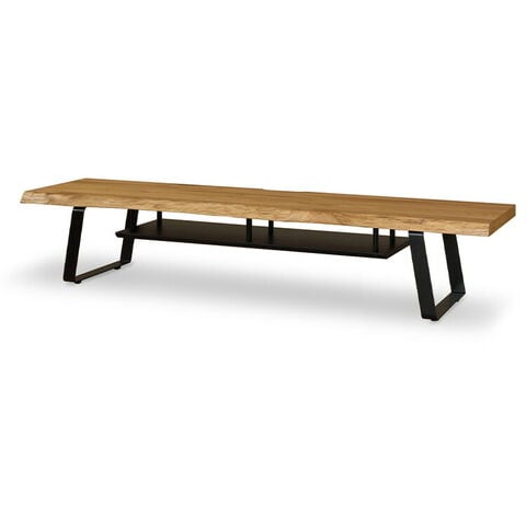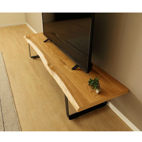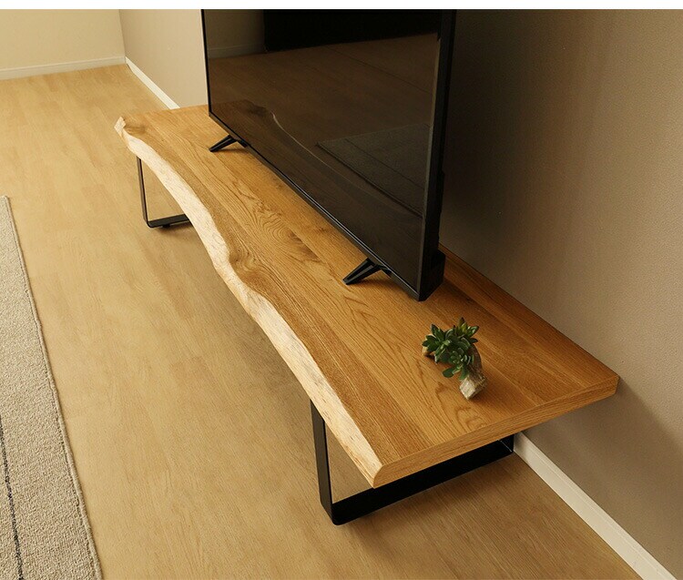 一枚板風TVBです。前面は天然のノタ面無垢材があしらわれているため、木が持つ本来の魅力が楽しめるテレビボードです。そのため一枚一枚形状が変わります。