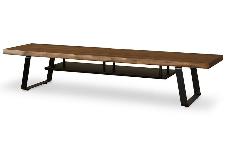 一枚板風TVBです。前面は天然のノタ面無垢材があしらわれているため、木が持つ本来の魅力が楽しめるテレビボードです。そのため一枚一枚形状が変わります。