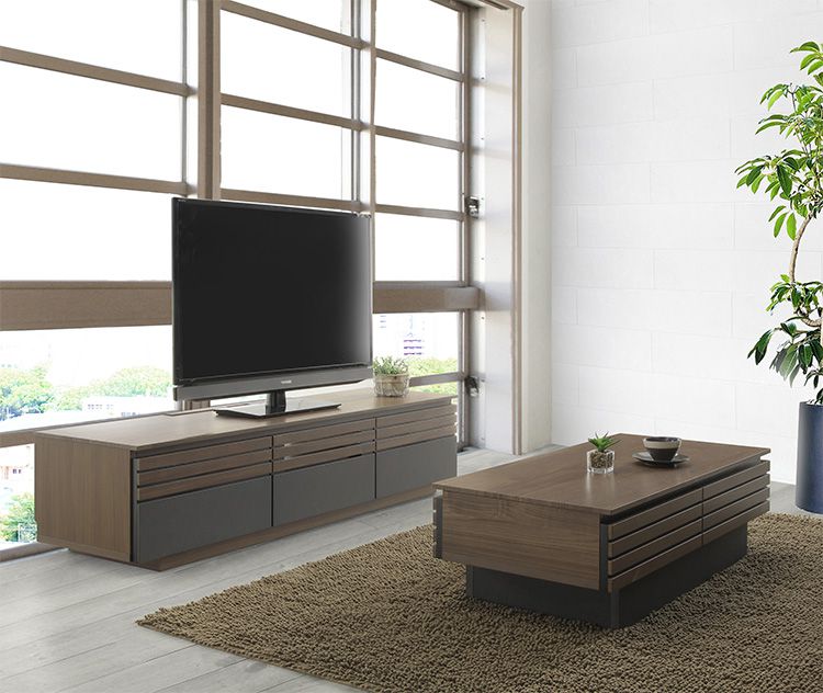 セラミック調シートとウォールナット柄のモダンな2トーンデザインのTVB。