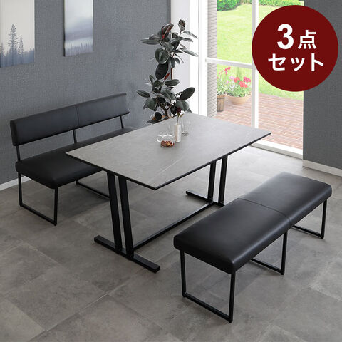 ダイニングセット 3点セット 4人掛け セラミック ダイニングテーブルセット ベンチ チェア 食卓セット 天然木 ナチュラル レザー PVC【送料無料】