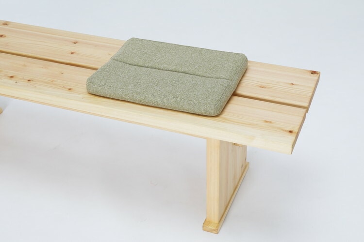 ベンチに付けられる別売りのクッションです。カバーリング仕様になっております。