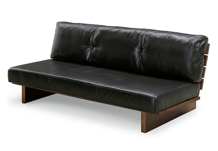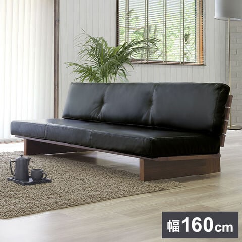 ソファ 2人掛け 幅160cm ローソファ アームレス 座面高33cm 木脚 ウォールナット レザー 本革 フロアソファ リビング ダイニング【送料無料】