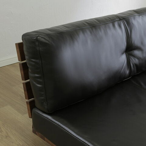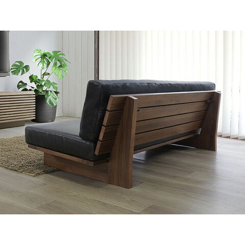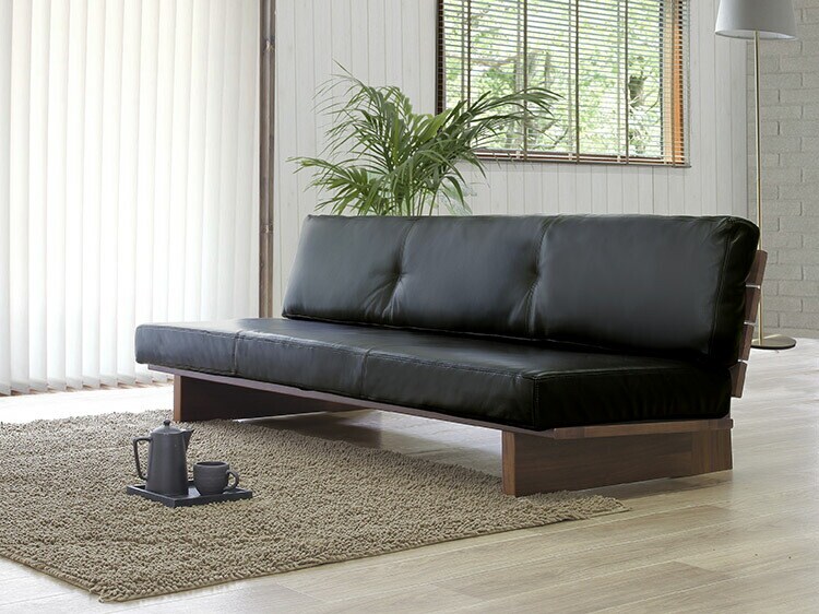 ソファ 2人掛け 幅180cm ローソファ アームレス 座面高33cm 木脚 ウォールナット レザー 本革 フロアソファ リビング ダイニング【送料無料】