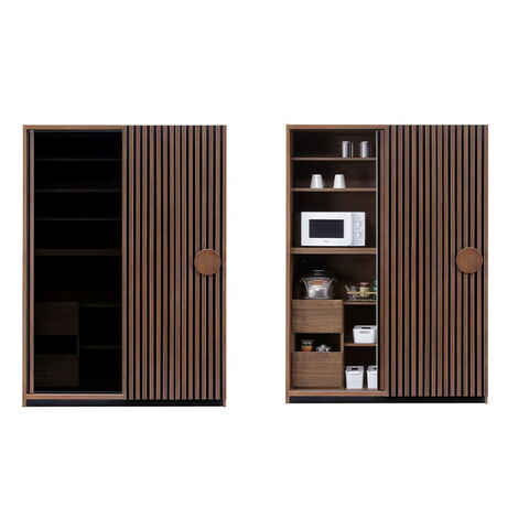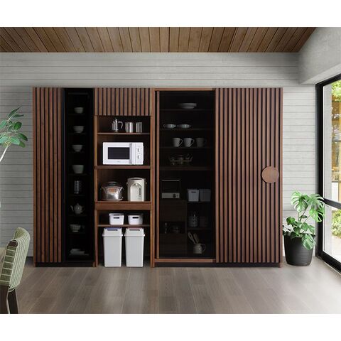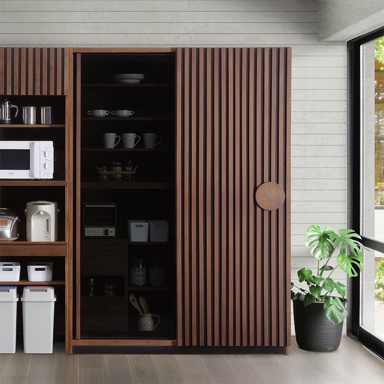 食器棚 キッチンボード 幅138 奥行52 高さ196 引き戸 開梱設置無料 ハイタイプ ウォールナット 天然木 おしゃれ 大容量 キッチン 収納 ブラックガラス リンク【送料無料】のレビュー