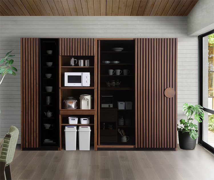 SL-KBはレンジや炊飯器などの家電が収納可能です。