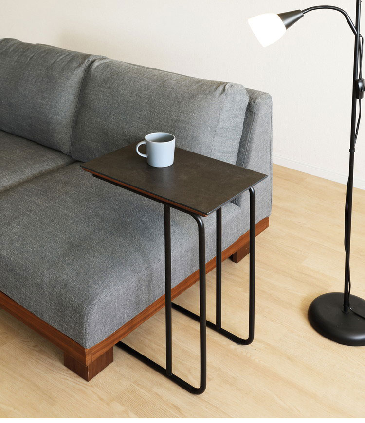 少し高めのサイドテーブルですので、肘の高いソファやベッドフレームの横でも使用していただけます。