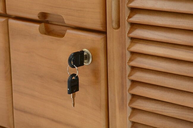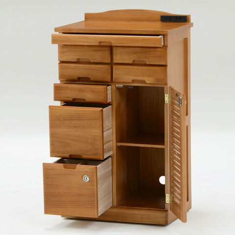 多引き出しのFAX台。隠しキャスターがついているので移動もラク。鍵付き