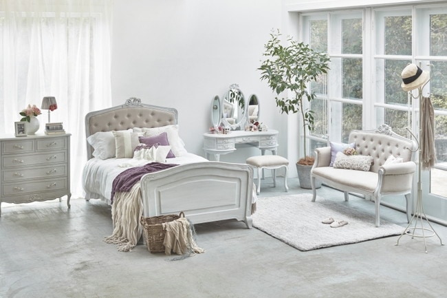 クラシックな上品さとモダンなテイストをあわせ持つアンティーク風ソファ。