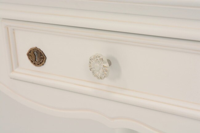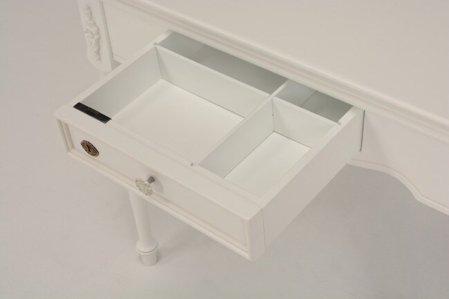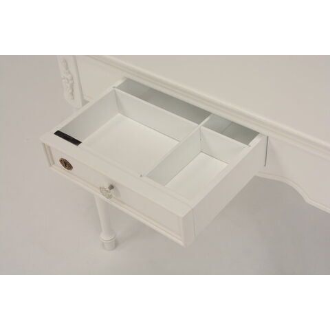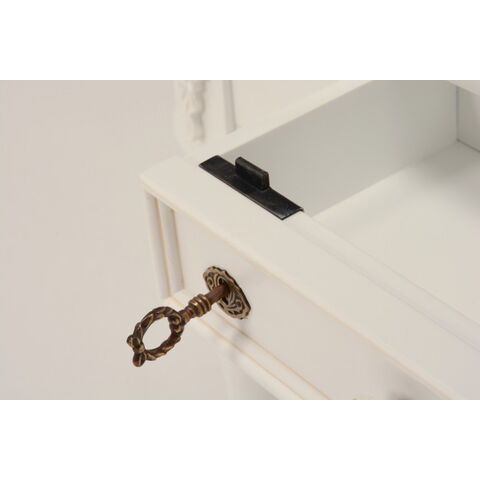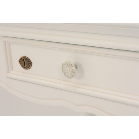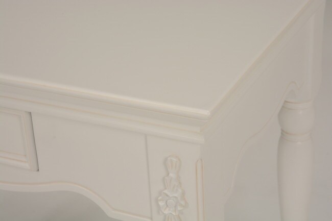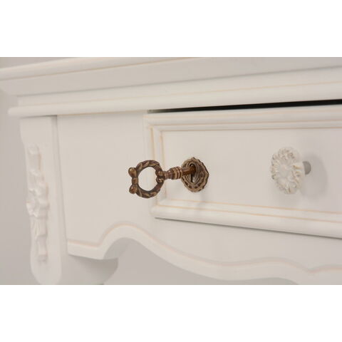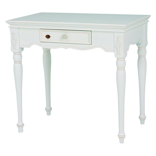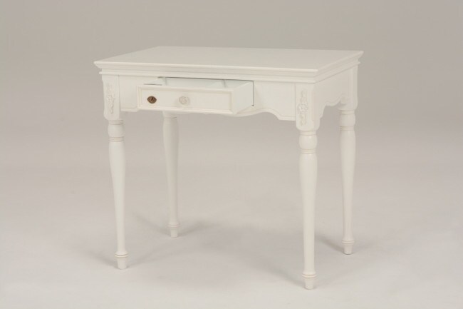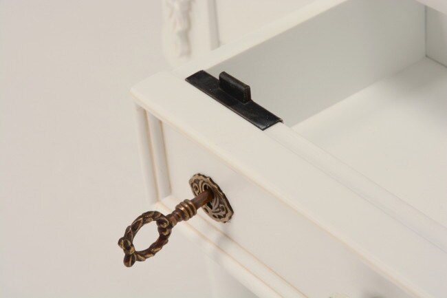 エレガントな彫刻が施された引出しつきアンティーク風テーブル。引き出しは鍵付き。