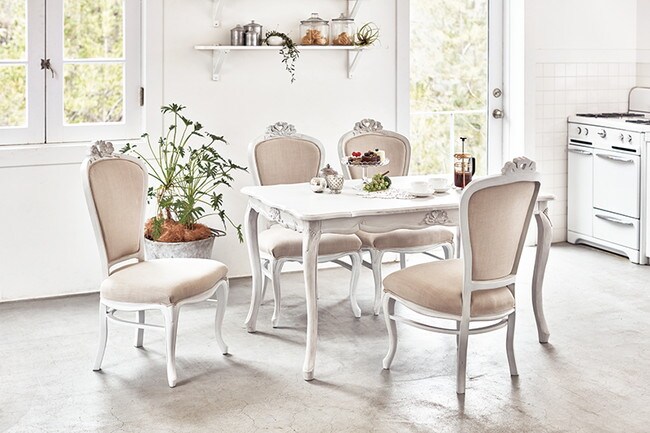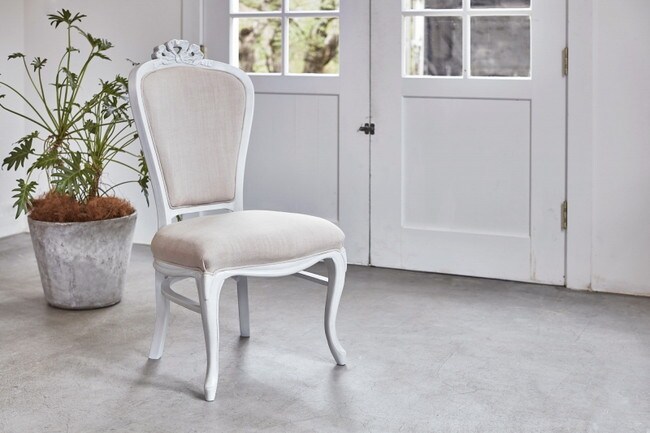 クラシックな上品さとモダンなテイストをあわせ持つアンティーク風ダイニングチェア。