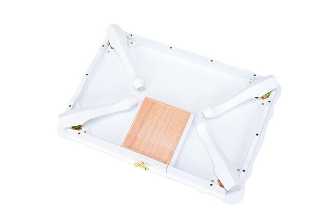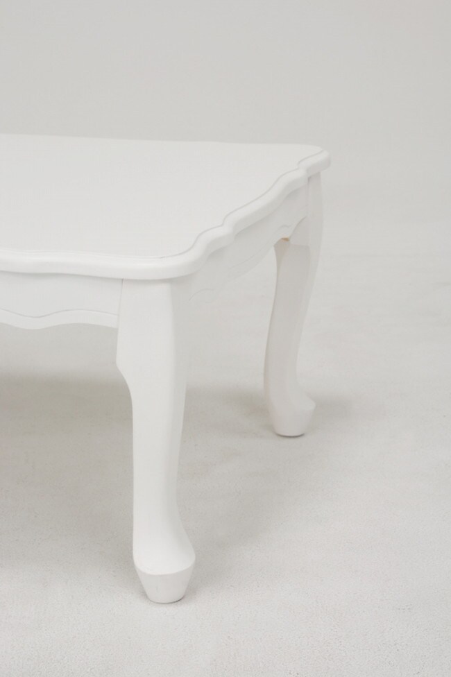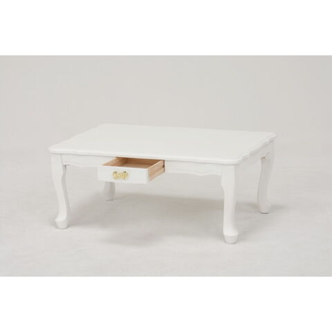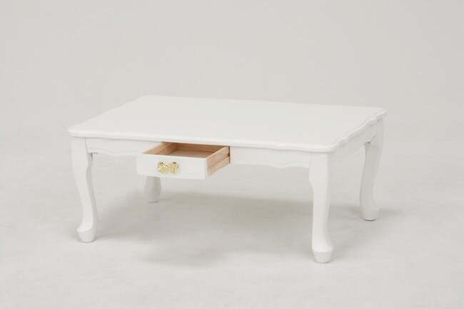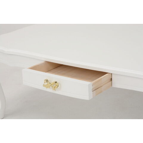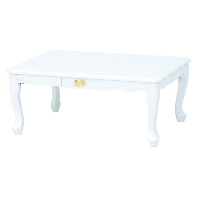 折りたたみ式で収納らくらく、引き出しのリボンモチーフの取っ手と猫脚が可愛いコンパクトテーブル。