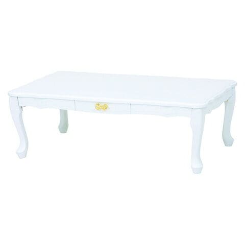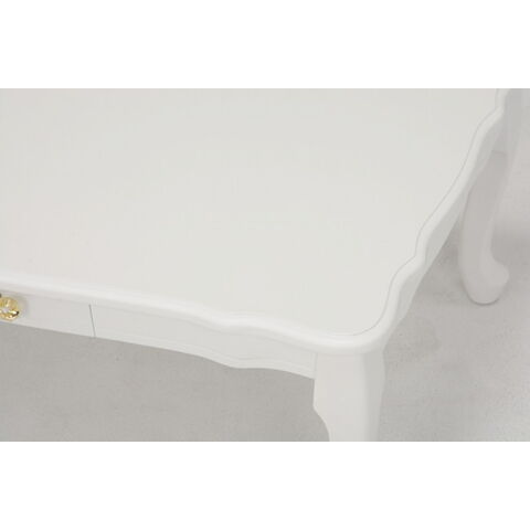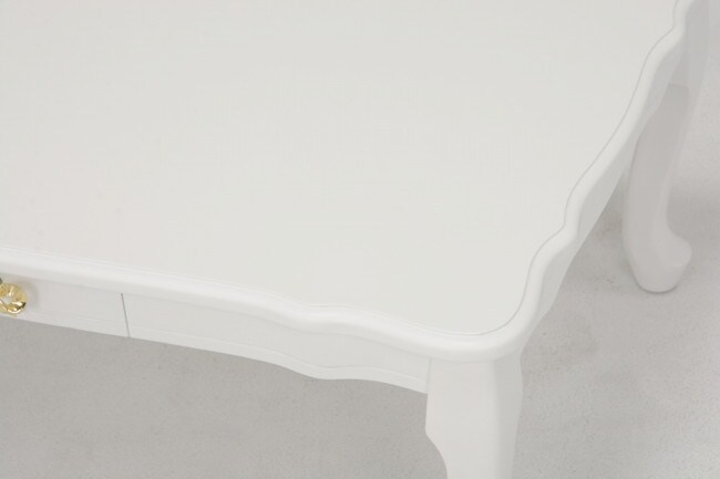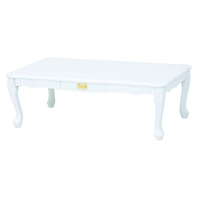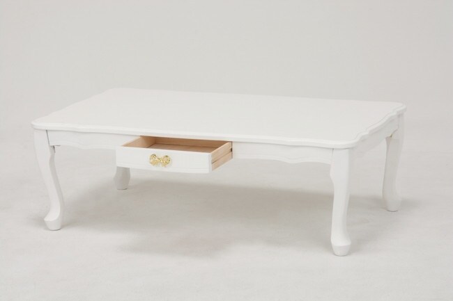 折りたたみ式で収納らくらく、引き出しのリボンモチーフの取っ手と猫脚が可愛いコンパクトテーブル。