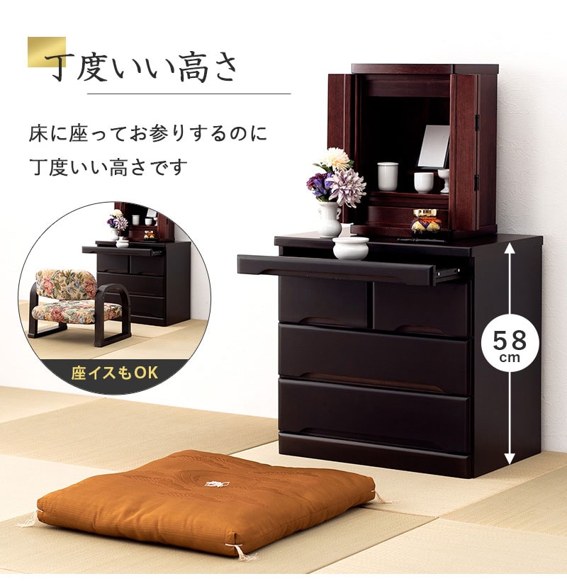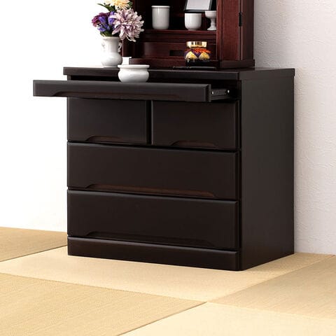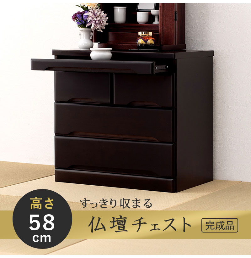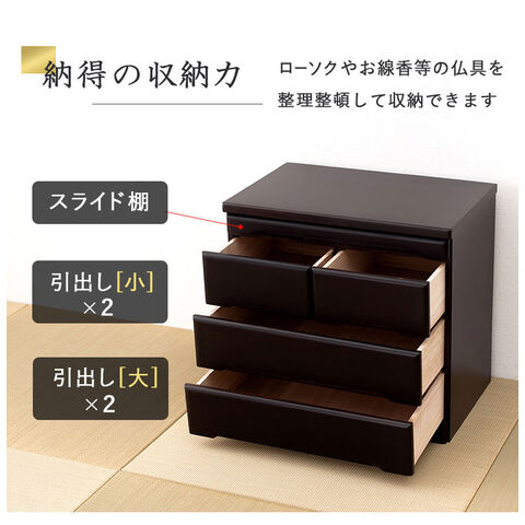 仏壇チェスト 完成品 幅60 奥行40 高さ58 仏壇下台 桐製 ミニ仏壇 紫壇調 スライド棚 引出し 木製 萩原 MCH-6793【送料無料】