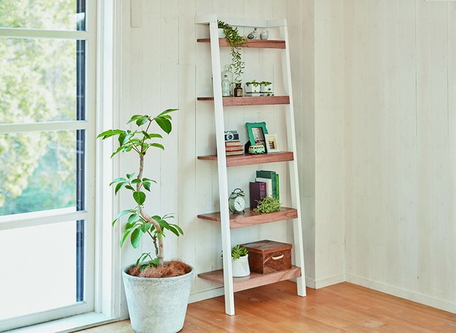インテリア性に富んだツートンカラーが際立つ質感の高い壁面収納ラック。幅62cm