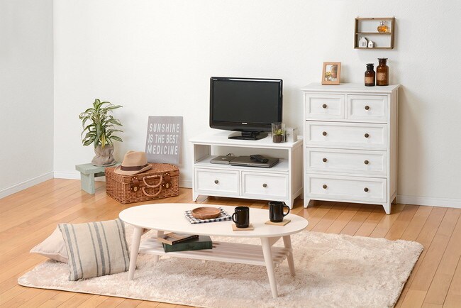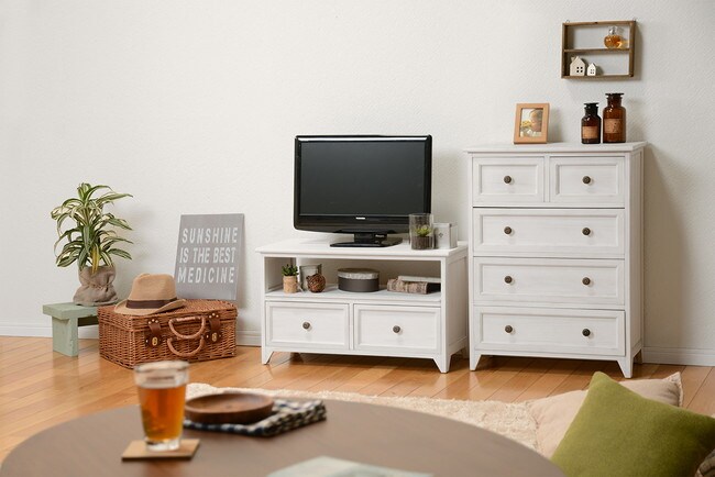 シンプルなデザインのチェストをフレンチアンティーク風に仕上げています。一人暮らしで使いやすいコンパクトサイズ。
