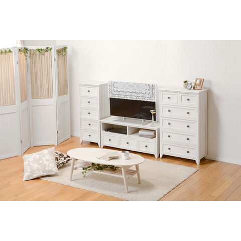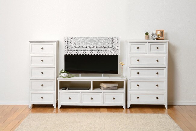 シンプルなデザインのチェストをフレンチアンティーク風に仕上げています。一人暮らしで使いやすいコンパクトサイズ。