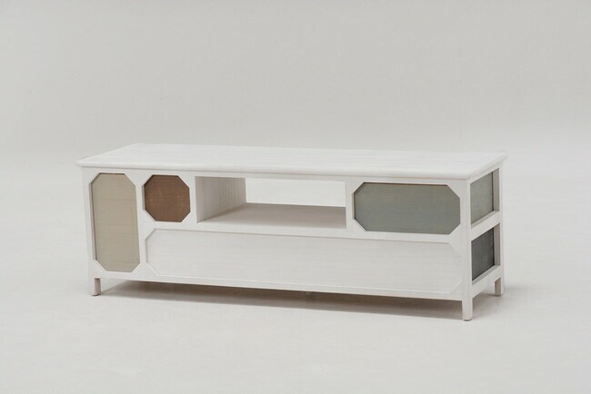 木の温もりとやさしい配色が自慢のカラフルテレビ台。しっかりと収納することも出来ます。