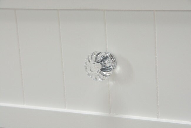 使いまわしの良いランドリーチェスト。クリスタル調取っ手が引き立ちます。
