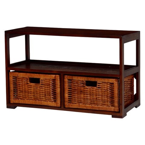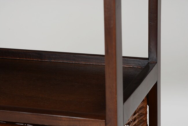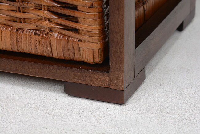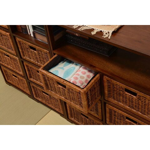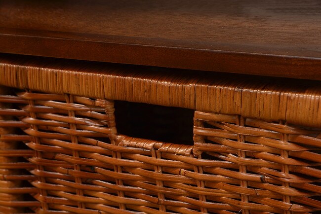 天然木とラタンを組み合わせたランドリーチェスト。オープンスペースには小物が飾れます。