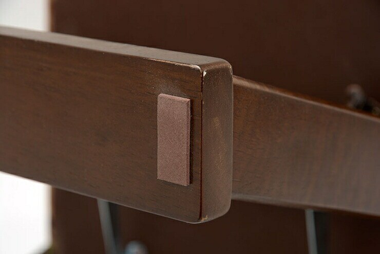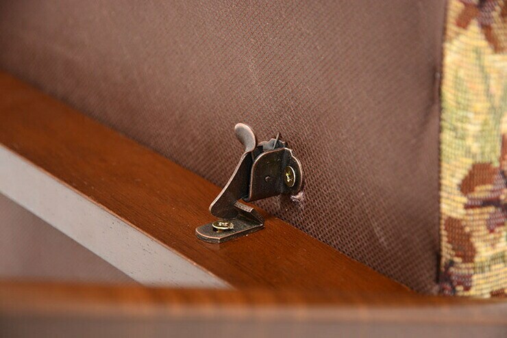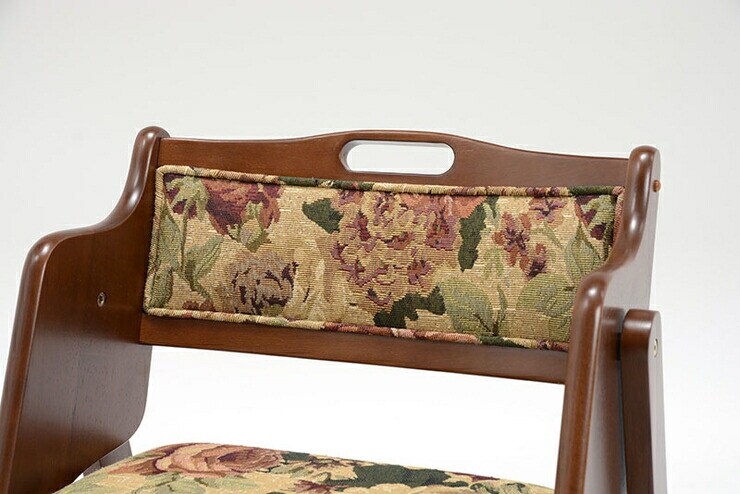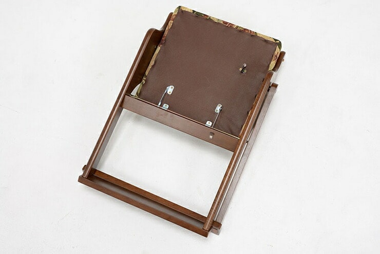 ストッパー付きなので勝手に閉じず安全な折りたたみチェア。背面も生地張りで高級感ある仕上がり。