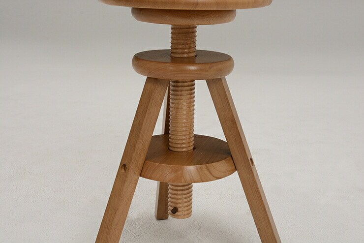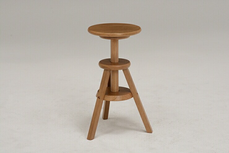 座面を回転させると高さが調節できるスツール。天然木を使用しインテリアとしてもお部屋になじみます。