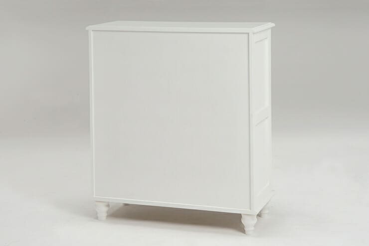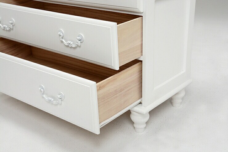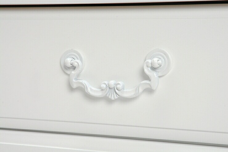 上品な白い取っ手のついた、シンプルながらも上質さを感じさせるワイドチェスト。