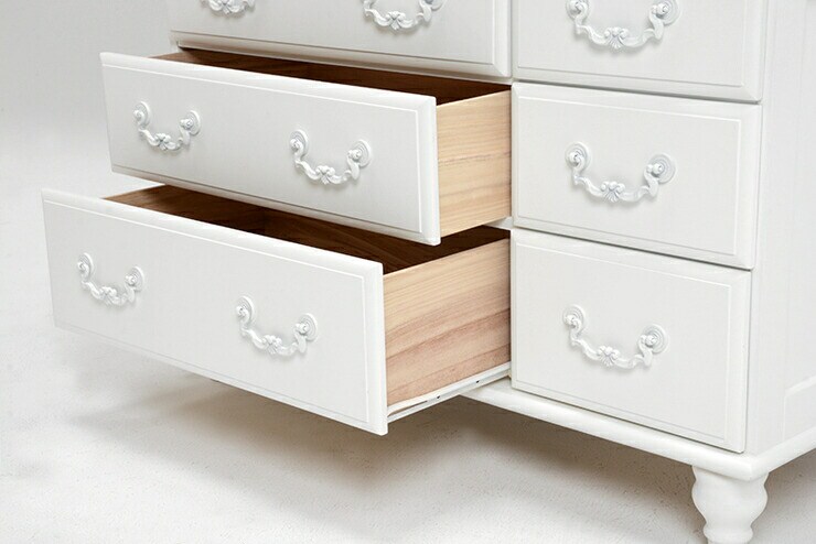 上品な白い取っ手のついた、シンプルながらも上質さを感じさせるローチェスト。
