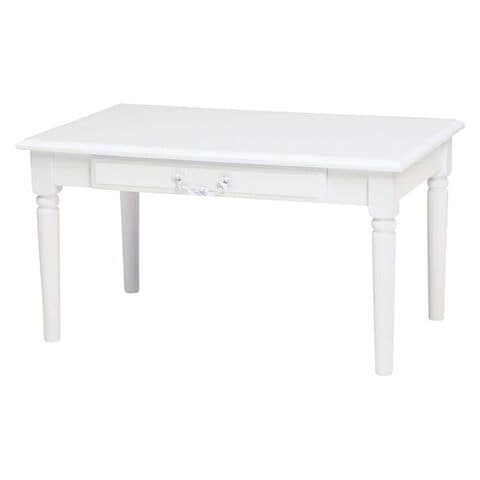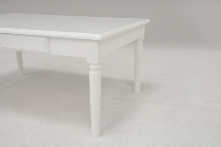 シンプルながらも、上品な白い取っ手のついたセンターテーブル。引出し付き