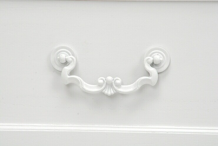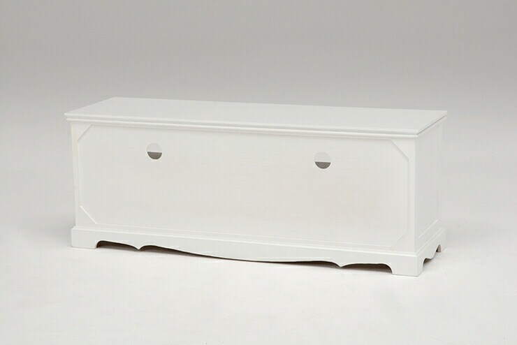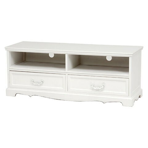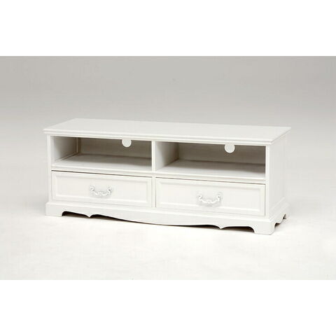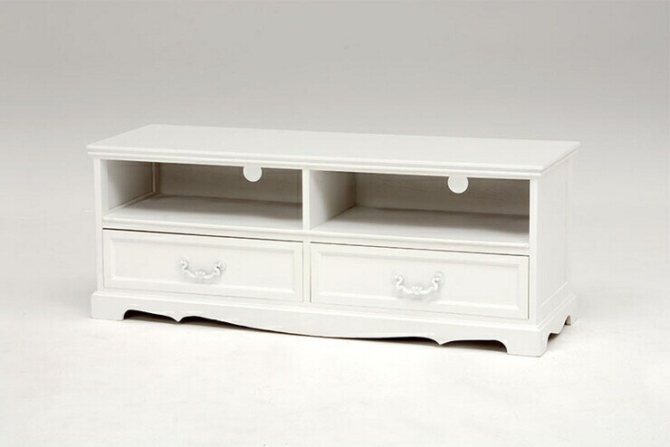 上品な白い取っ手が付いたテレビ台。DVDなどの収納に使える引出付き。幅110cm